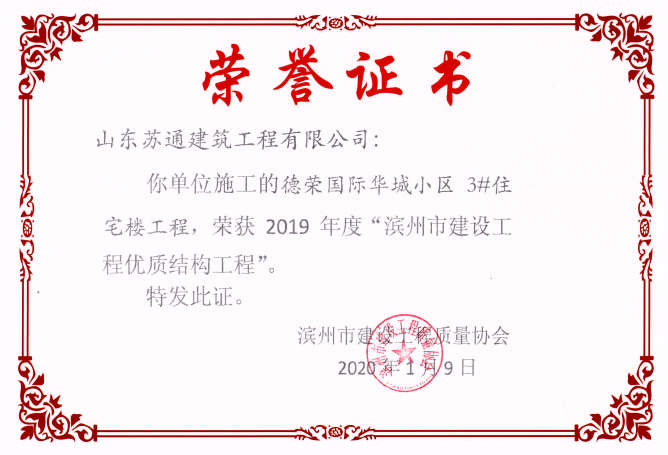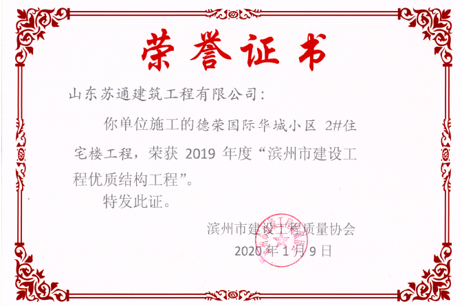 • 喜訊:我公司三位同志獲評(píng)濱州市建筑企業(yè)優(yōu)秀項(xiàng)目經(jīng)理稱號(hào)